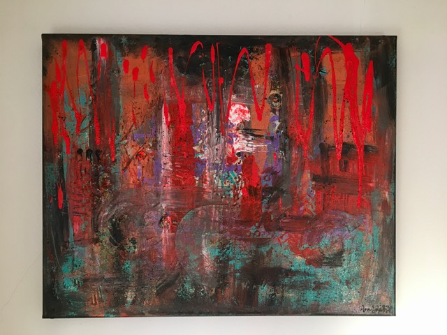 Mina tavlor målas i akryl, ibland olja, och utmärker sig med att vara kraftfulla med mycket känsla och färg. Ibland målar jag på rå linneduk och de målningarna hänger jag personligen antingen med grova spikar, klämmor eller i kedjor - beroende på vad som passar med stilen på målningen. Men oftast målar jag på canvasduk och har en försmak för 3D-ramar.